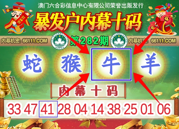 282期:《马会高手》①肖①码《牛-29.41》开:牛41中奖